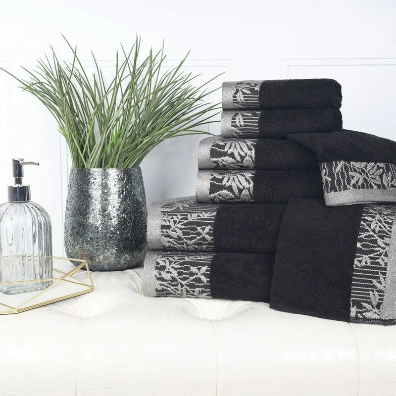 Wisteria 8 Piece Floral Cotton Bath Towel Set, Black