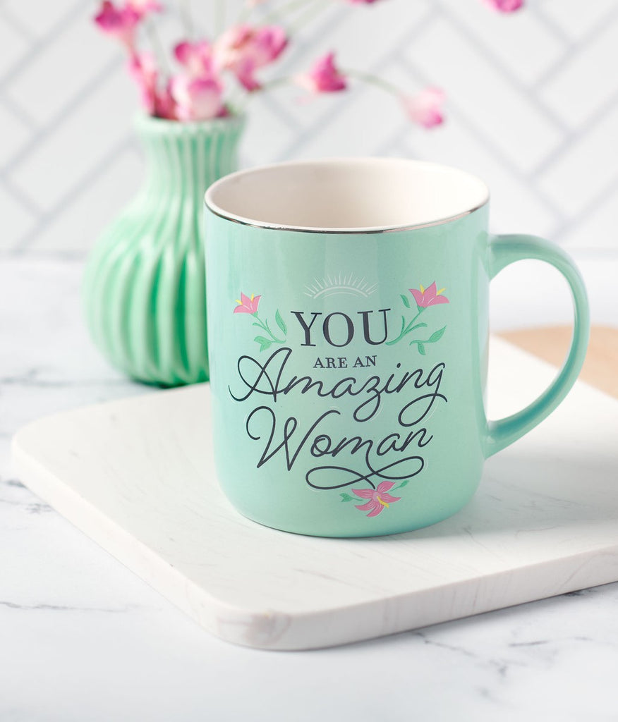A mug with a meaningful message makes a practical thank-you gift that will continue to share its message for a long time, and the You Are An Amazing Woman Teal Ceramic Coffee Mug will ensure that the amazing woman in your life is reminded of her awesomeness every time she uses it.