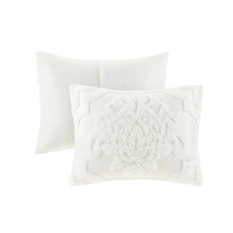The Home Essence Eugenia 3PC Tufted Cotton Chenille Damask Duvet Cover Set offers the perfect cottage touch to your bedroom décor. A tufted chenille damask design is beautifully displayed on the 100% cotton duvet cover and matching shams, for a soft shabby chic look. Machine washable for easy care, this bedding set is OEKO-TEX certified, meaning it does not contain any harmful substances or chemicals to ensure quality comfort and wellness. A button closure secures a comforter insert within the duvet cover and inside corner ties prevent it from shifting (insert is NOT included).