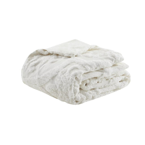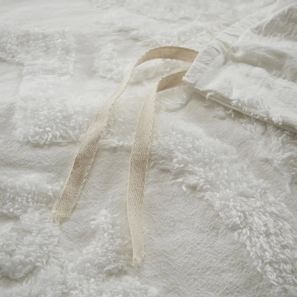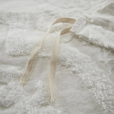 - Shabby Chic Cotton Chenille Damask Duvet Cover Set In White