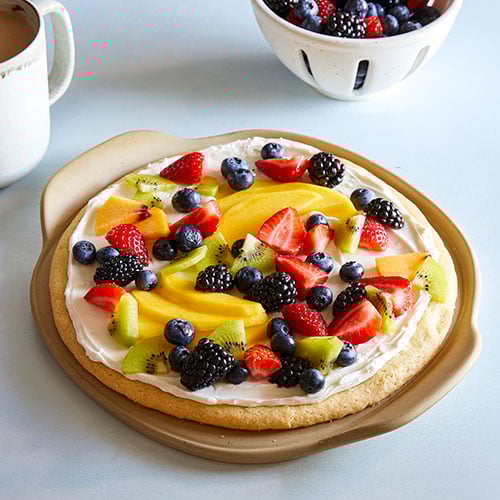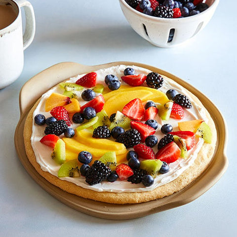When you cook your favorite homemade mini pizza on this stoneware, it’ll taste like it just came out of a professional pizza oven. Because the unglazed cooking surface draws moisture away, everything cooks consistently and turns out light and crispy. It has been designed with a raised lip on the back edge to make transferring that pizza on and off easier than ever (and keep it from falling off). Integrated handles make the stone easy to grasp and move about. Its small size fits most microwaves and toaster ovens.